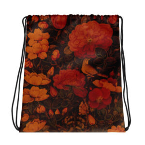 Based on a floral painting which dates back to 1844–45, this gorgeous design features the Gol-o-bolbol (bird-and-flower) style of Persian painting wherein a nightingale and two butterflies are in lush foliage. The painting was painted on the exterior of a lacquer mirror case with opaque watercolour. See the artwork on display at The Met museum in New York.