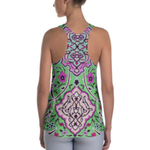 This colourful star-shaped design is inspired by a 15th century Persian tile and includes various motifs of Persian art and architecture such as the lotus flower in the centre which symbolises the Persian goddess of water, Anahita. The floral design of this tile on a Persian blue background was part of a larger, more complicated pattern that was set in place on the exterior of a building. This beautiful tile is currently kept at the Los Angles County Museum of Art.