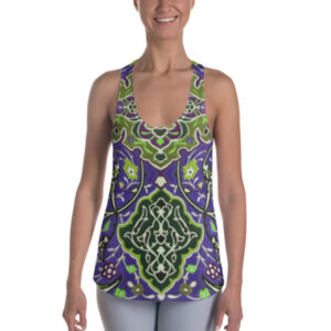This colourful star-shaped design is inspired by a 15th century Persian tile and includes various motifs of Persian art and architecture such as the lotus flower in the centre which symbolises the Persian goddess of water, Anahita. The floral design of this tile on a Persian blue background was part of a larger, more complicated pattern that was set in place on the exterior of a building. This beautiful tile is currently kept at the Los Angles County Museum of Art.